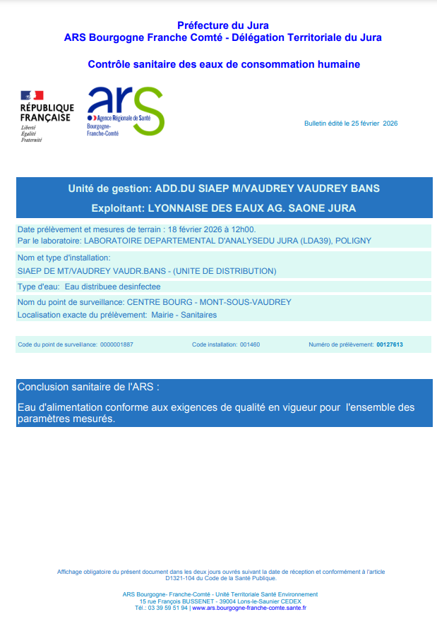 Télécharger le rapport de contrôle sanitaire des eaux de consommation humaine