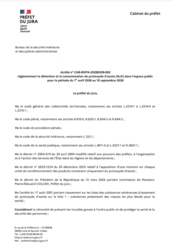 réglementant la détention et la consommation de protoxyde d'azote