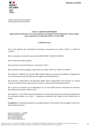 Arrêté interdisant la commercialisation, la détention et la consommation du protoxyde d'azote