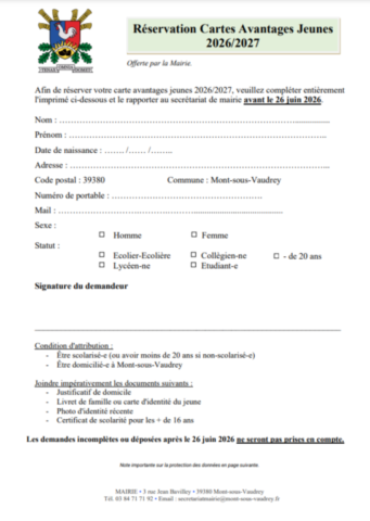 pour réserver la carte Avantages Jeunes 2026/2027